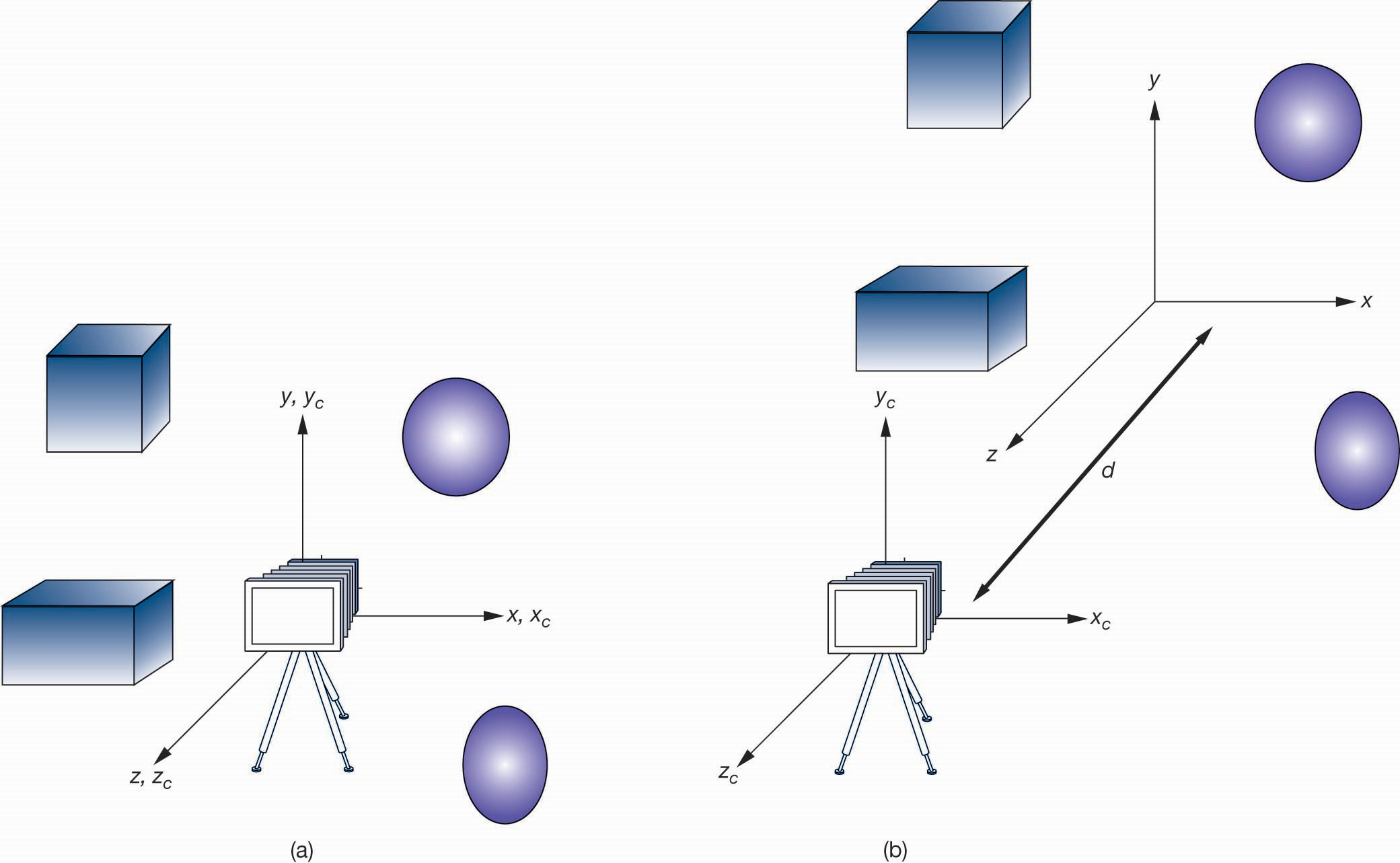 如果在平面$z=0$两侧都有物体,通常需要将相机移动距离$d$到合适的位置
