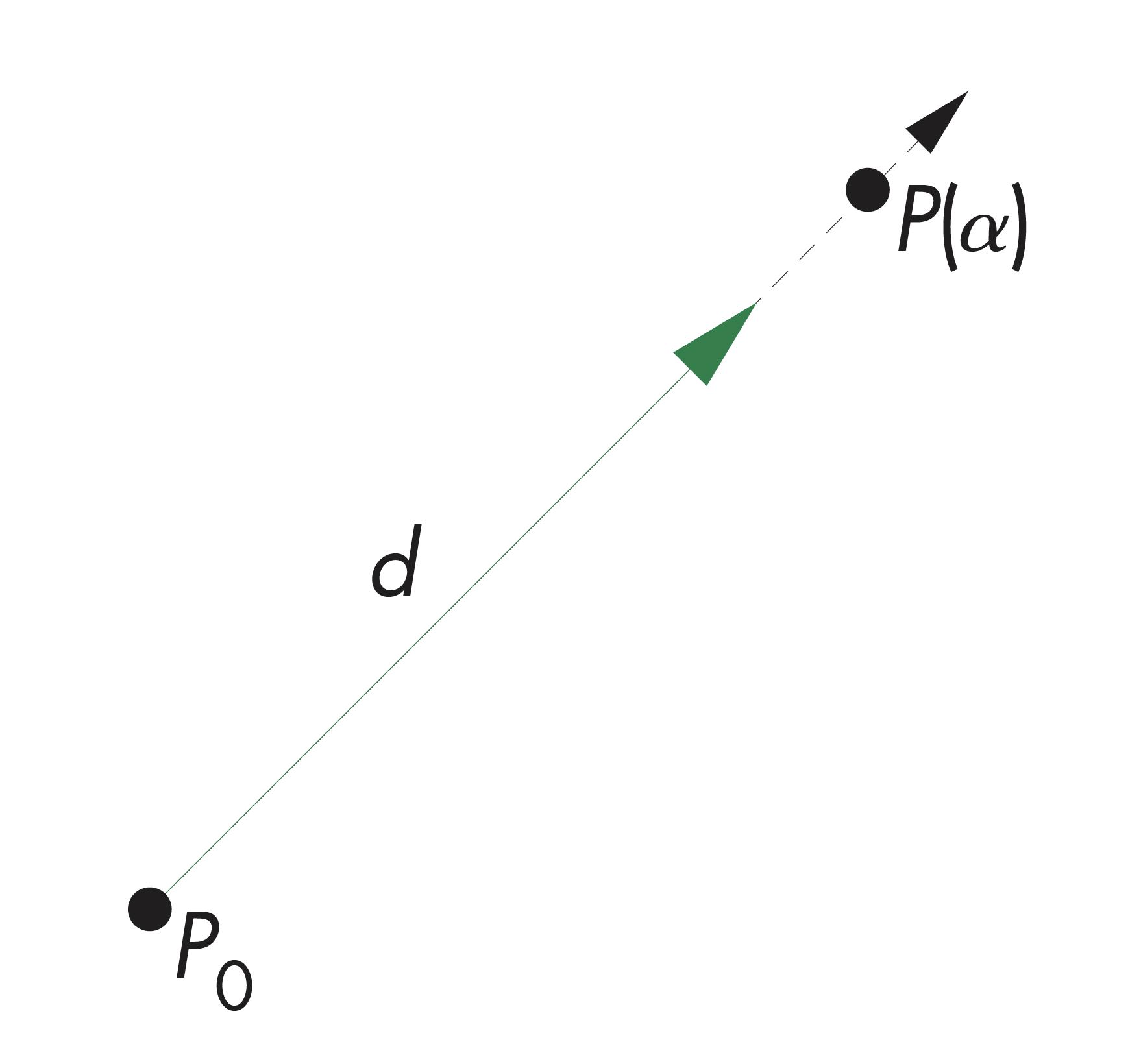 这称为参数方程。通过改变标量 $\alpha$ 的值,我们可以得到直线上所有的点