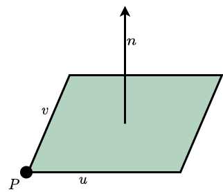 对由一点和两向量构成的平面 \[P(\alpha,\beta)=P+\alpha u+\beta v\]