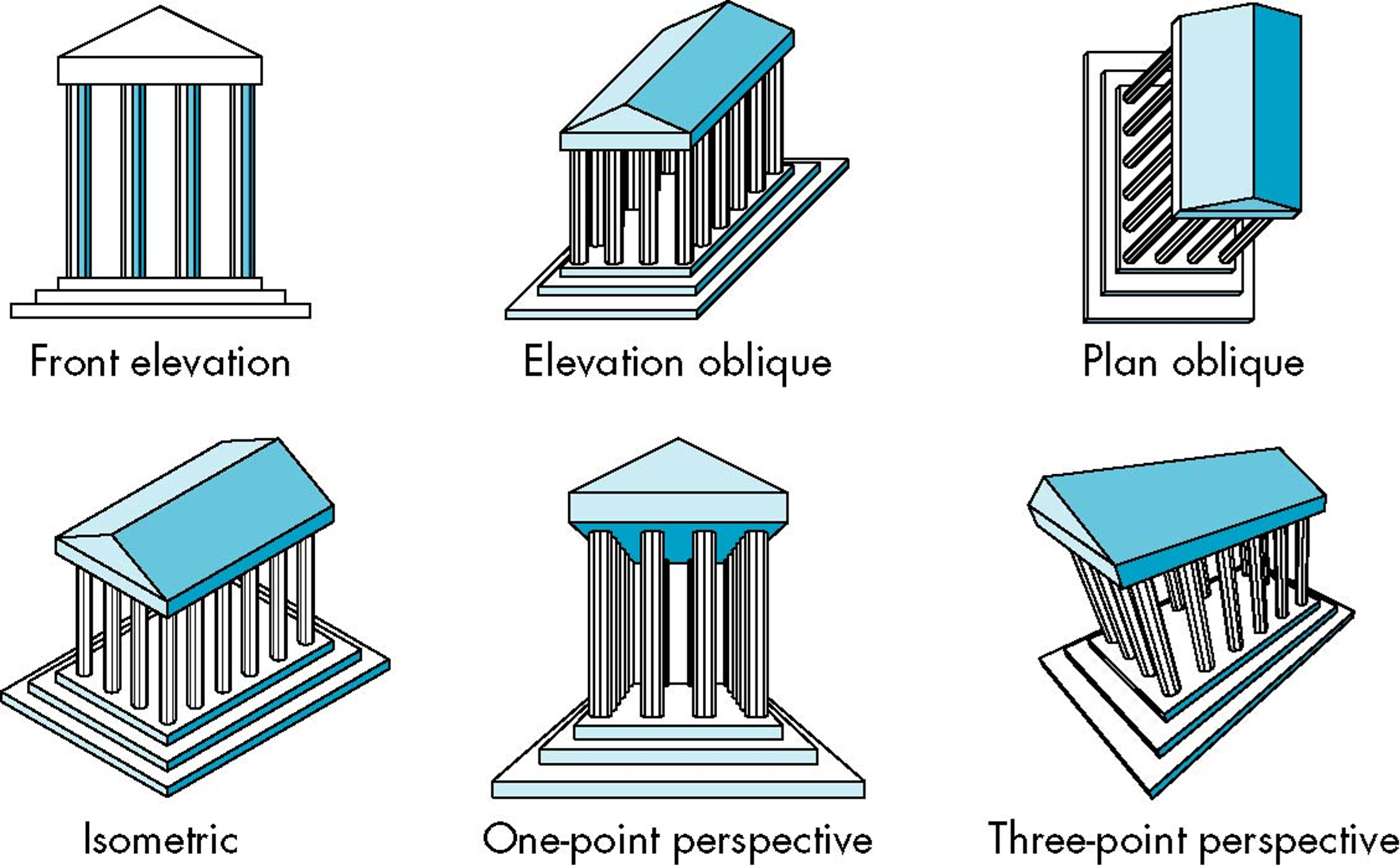 投影平面相对物体发生运动,与物体的主要坐标轴不平行,呈一定角度,可用于在一张图上展示物体的三维形态